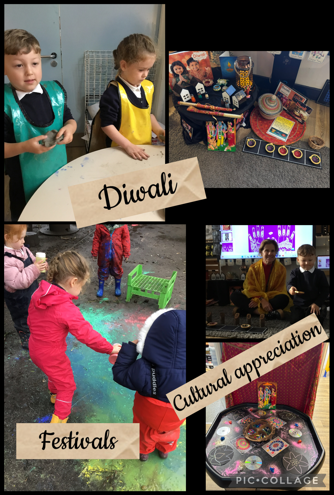 During half-term it was Diwali the Hindu and Sikh festival of light. It is a wonderful festival to celebrate with young children as there are so many sensory and creative activities to involve children in. The children were invited to make clay Divas, Rangoli patterns and Mendhi art. The children loved dressing in Asian clothes and dancing using our finger lights. We also looked at Diwali cards, dance sticks, jewellery and watched some Diwali celebrations. We hope everyone who celebrated Diwali had a wonderful time.