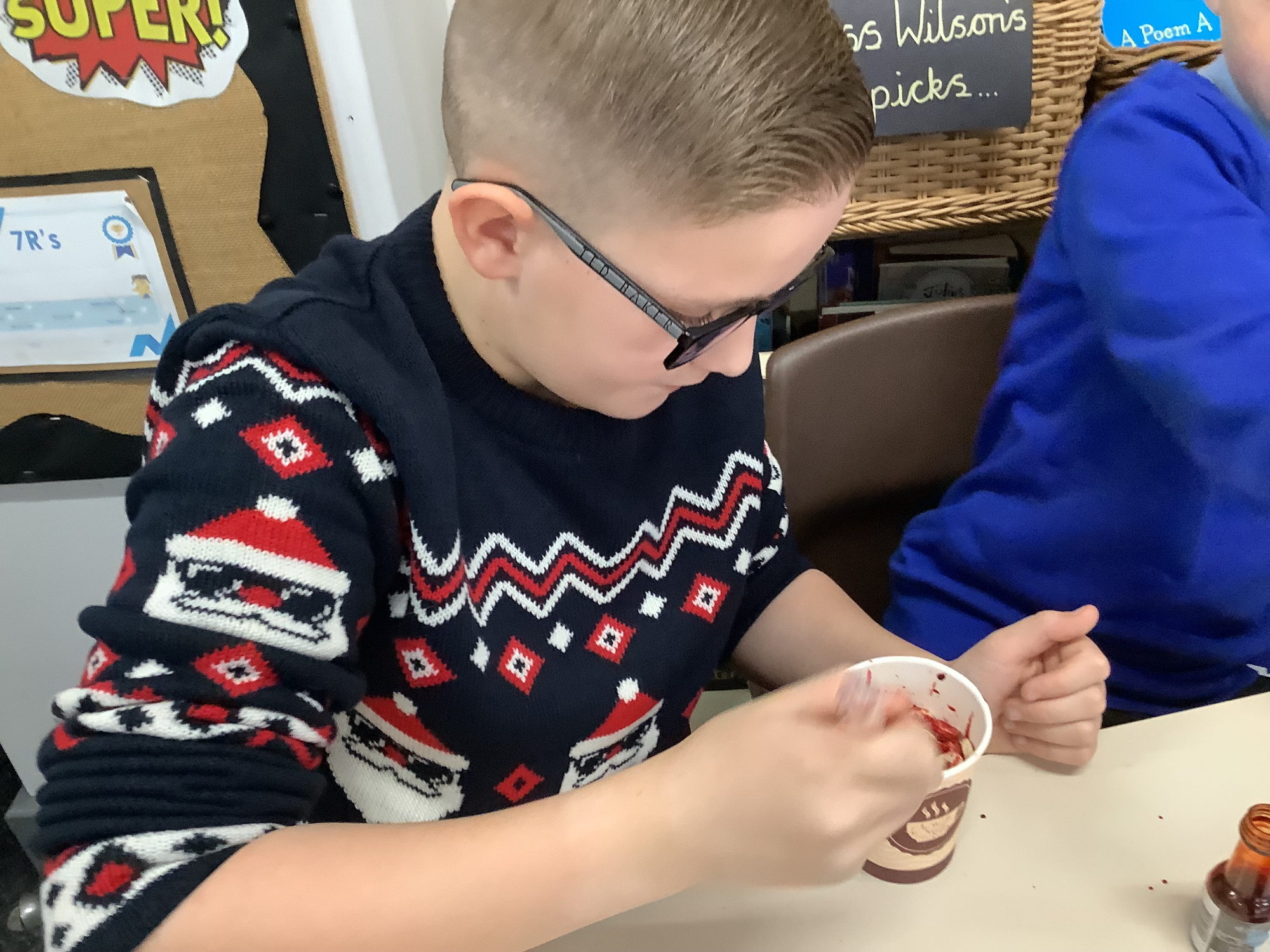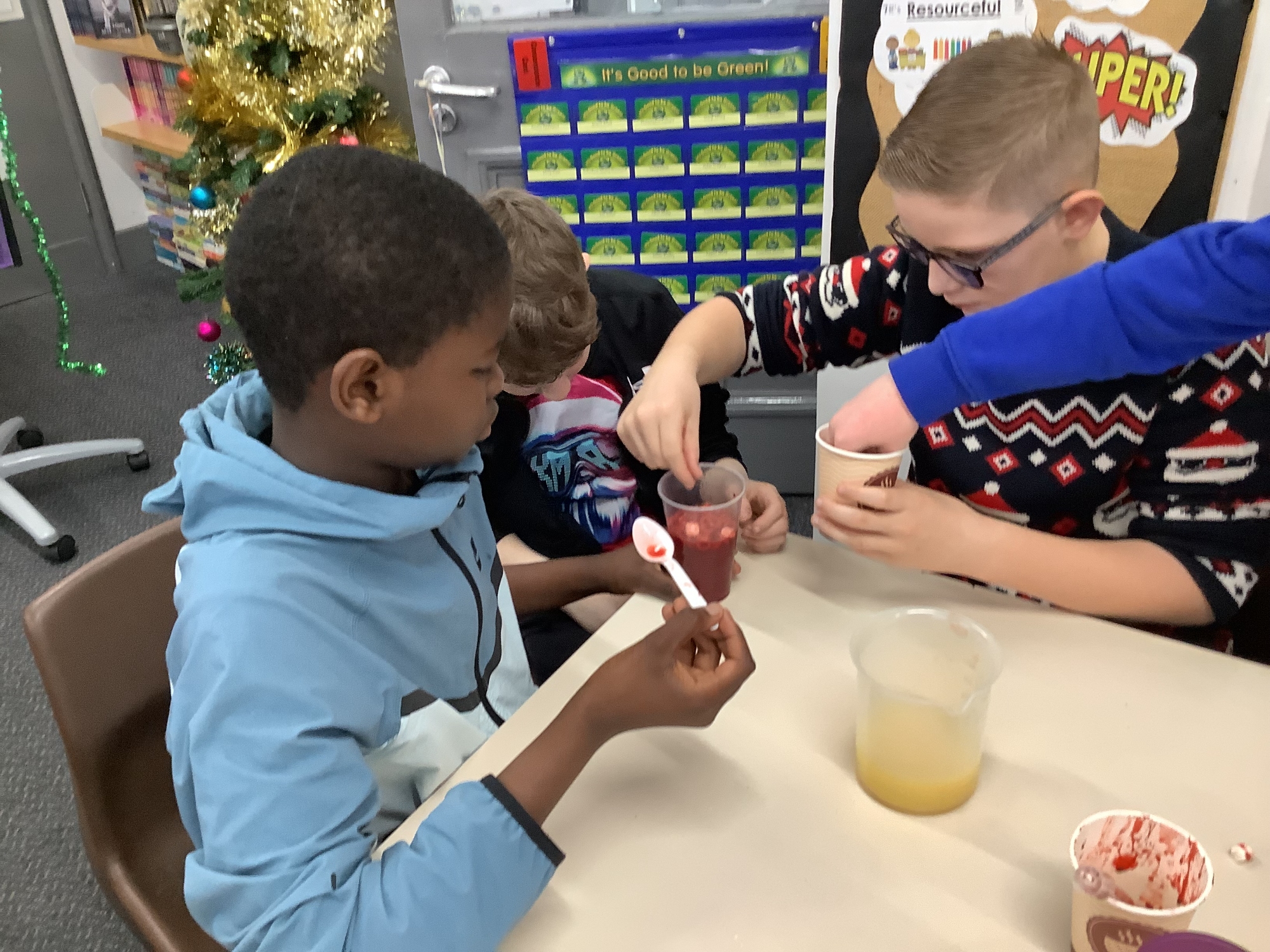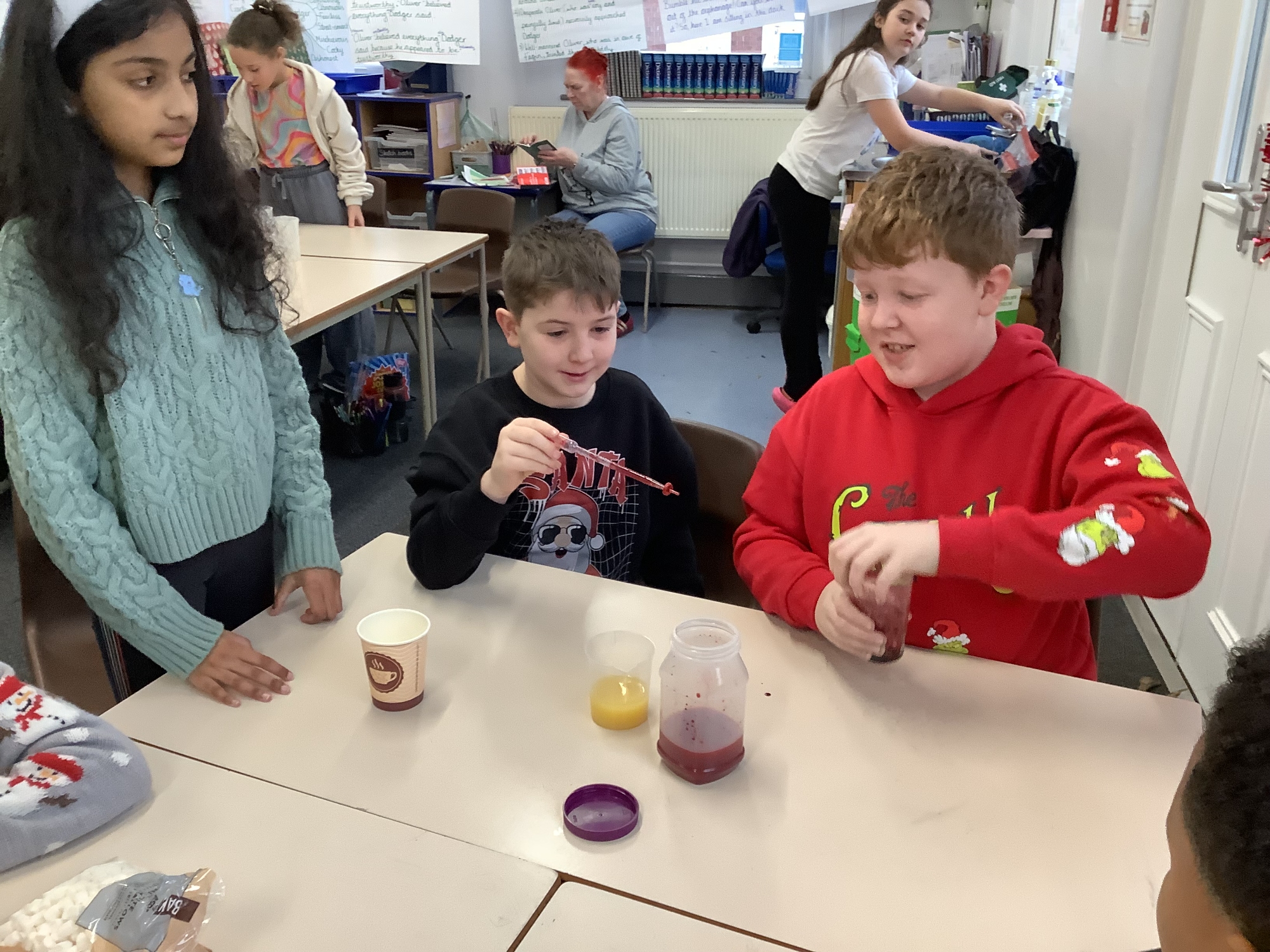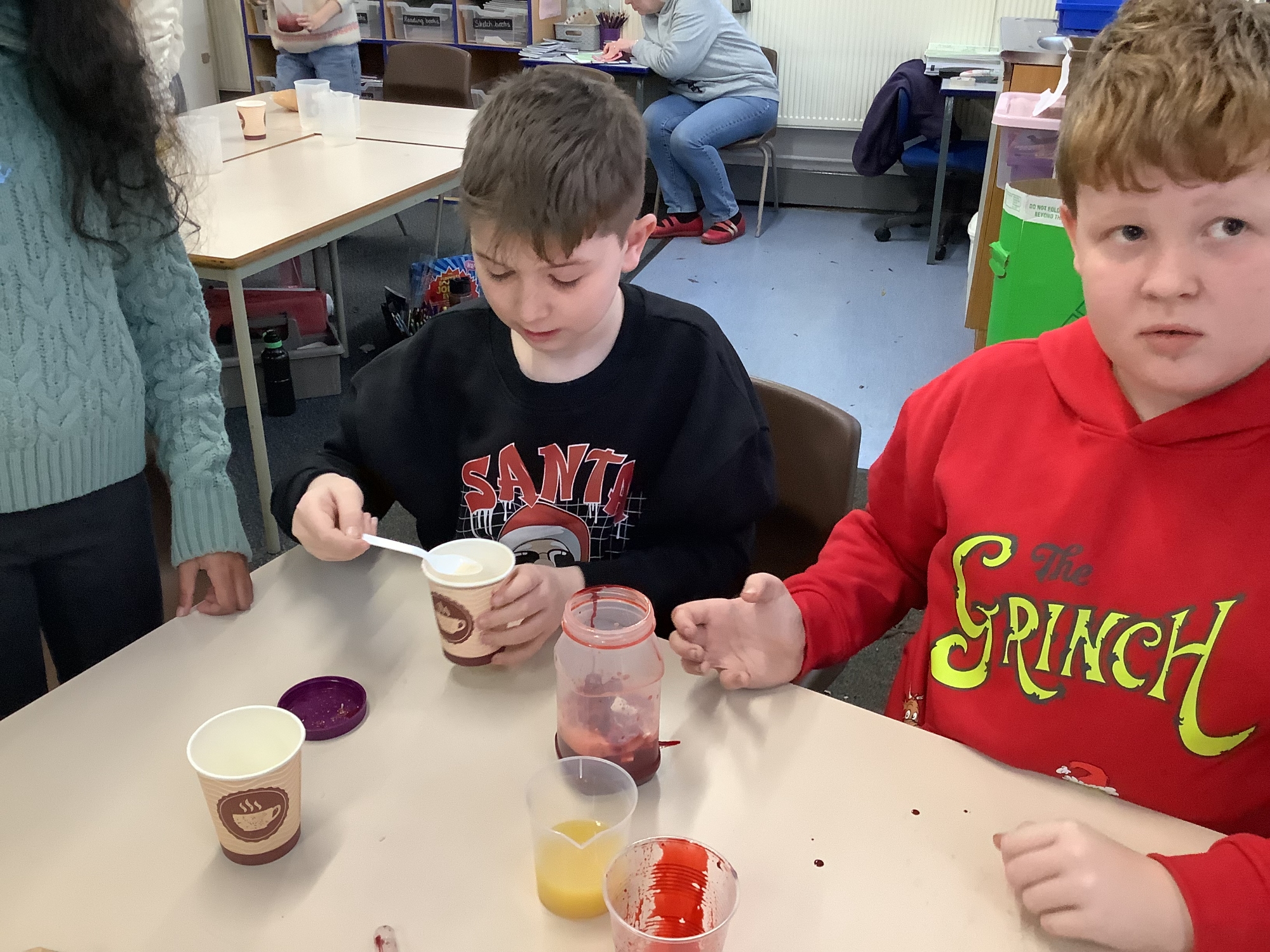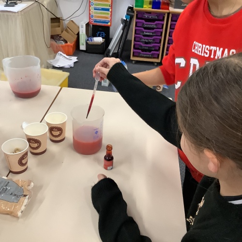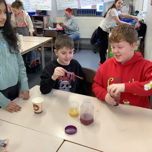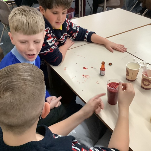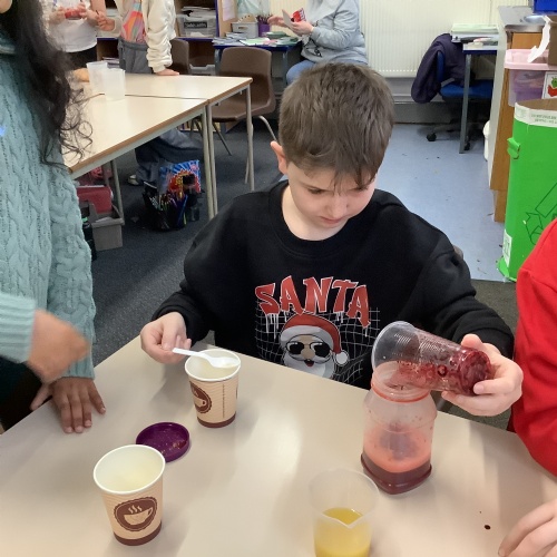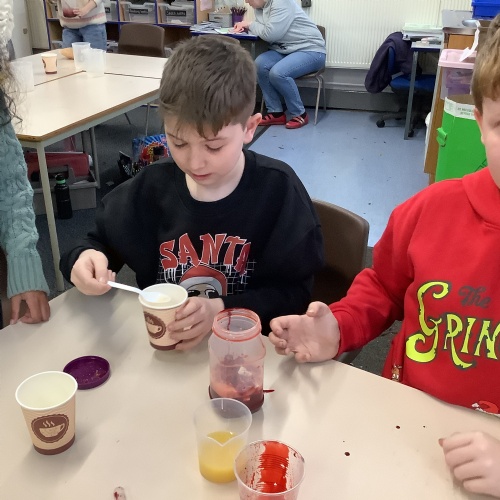 In our science lessons, we have found out about the components of our blood. We then used this knowledge to make blood soup. Yuk!
