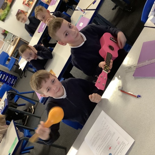 This week has been very musical! We have been continuing to learn about sound in our science lessons. We explored what happens to the vibrations from musical instruments if we gave them more energy.