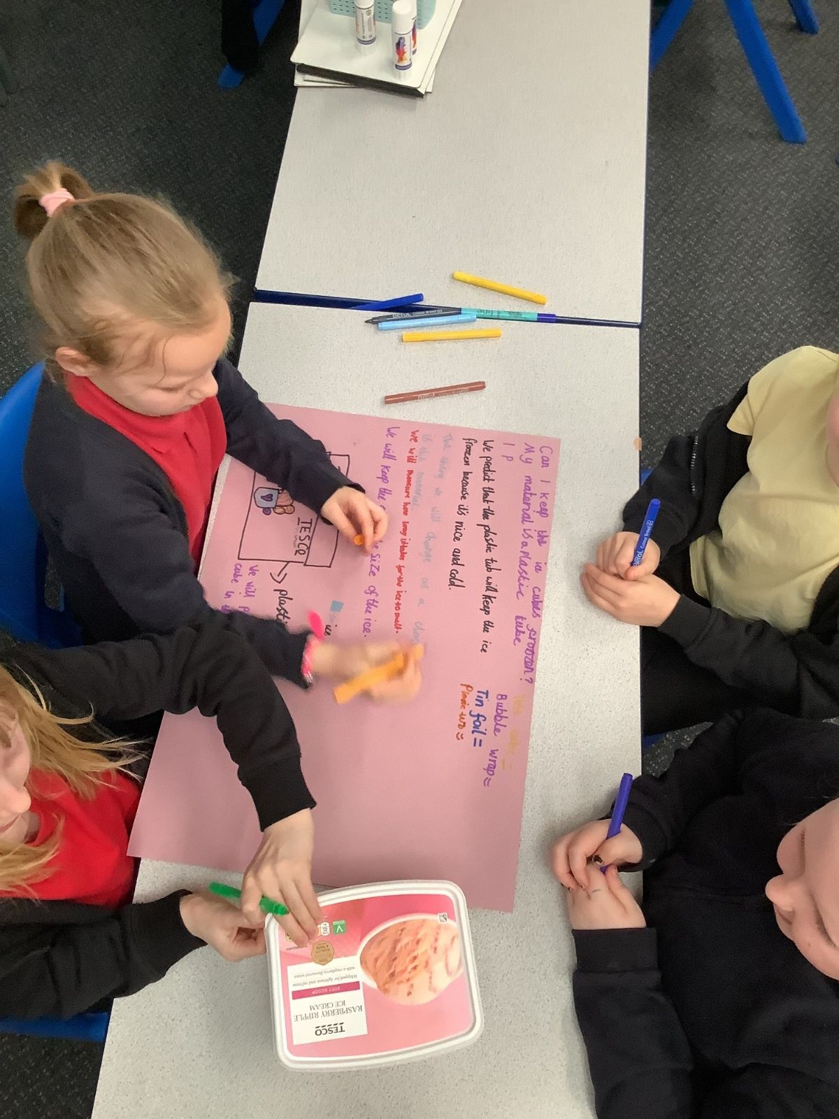 βοΈ Year 4 British Science Week Challenge! βοΈ The winners of “Don’t Melt the Ice!” are Isla, Haidie, Layla and Emilee.π Year 4 have used teamwork, creativity and clever thinking, they took on the challenge and worked well. Their big question: “Can we keep the ice cubes frozen?” π§