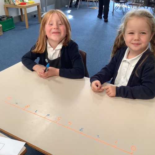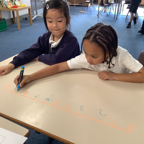 In our Maths learning, we have been looking at the number line. We had a practical lesson where  we had to fill in the missing number on a number line. We then had to use counters and cubes to show that amount.