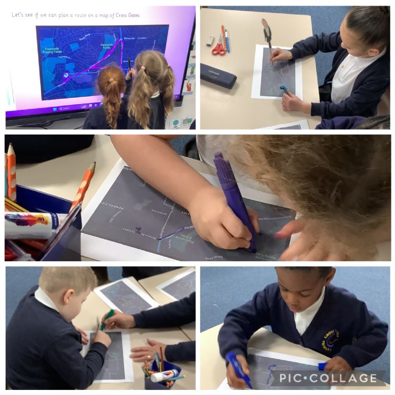 In Geography, we have been looking at our local area. We were given maps of Cross Gates and we had to use lolly sticks of ourselves to find places! We were also given a starting and end point, we had to figure out the best way of getting there - making sure we used the roads properly.