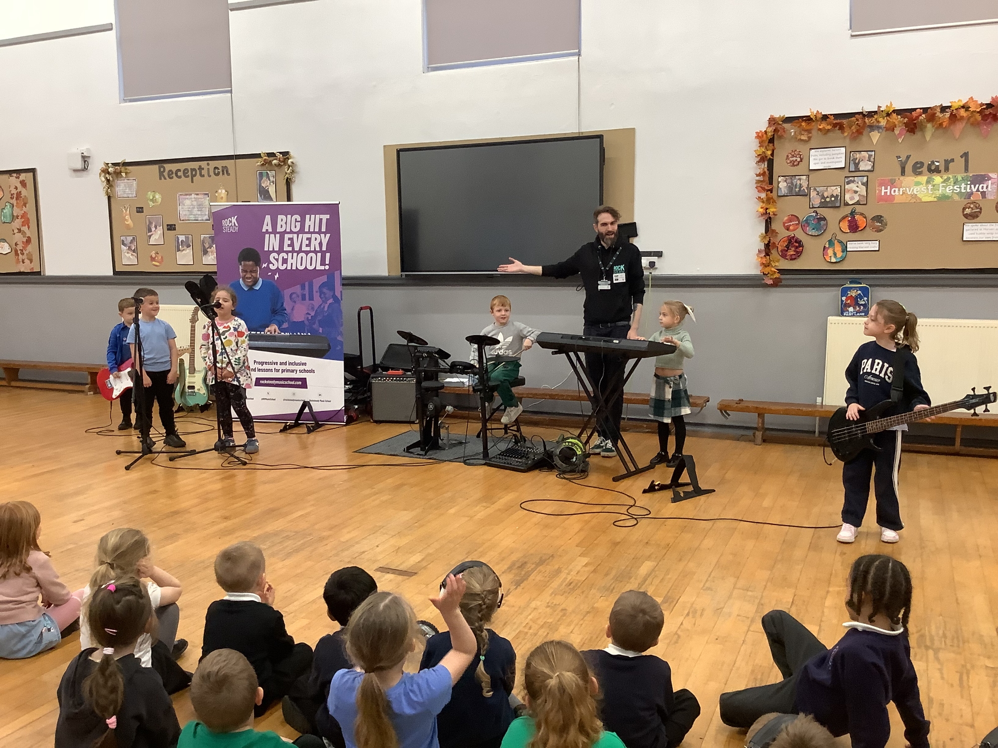 We had lots of fun when Tim from Rock Steady came in! He taught us how to hold a beat and some of us got to perform on the instruments!