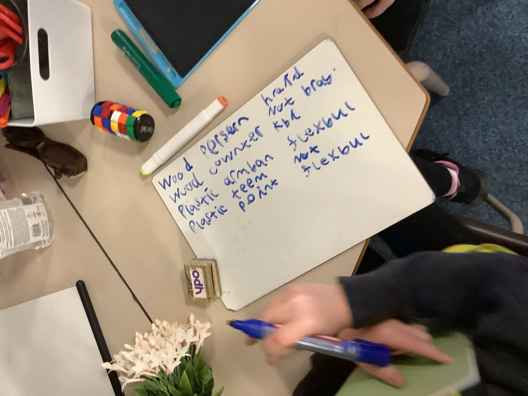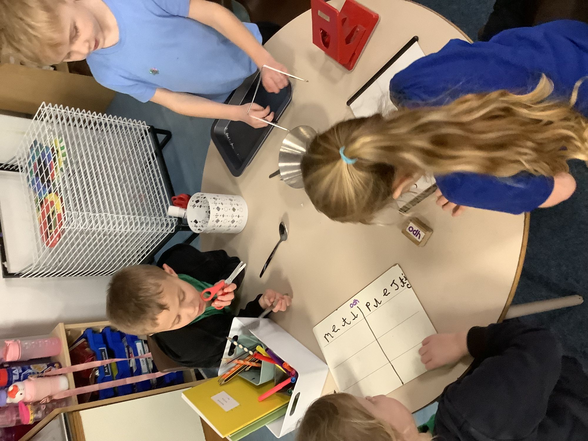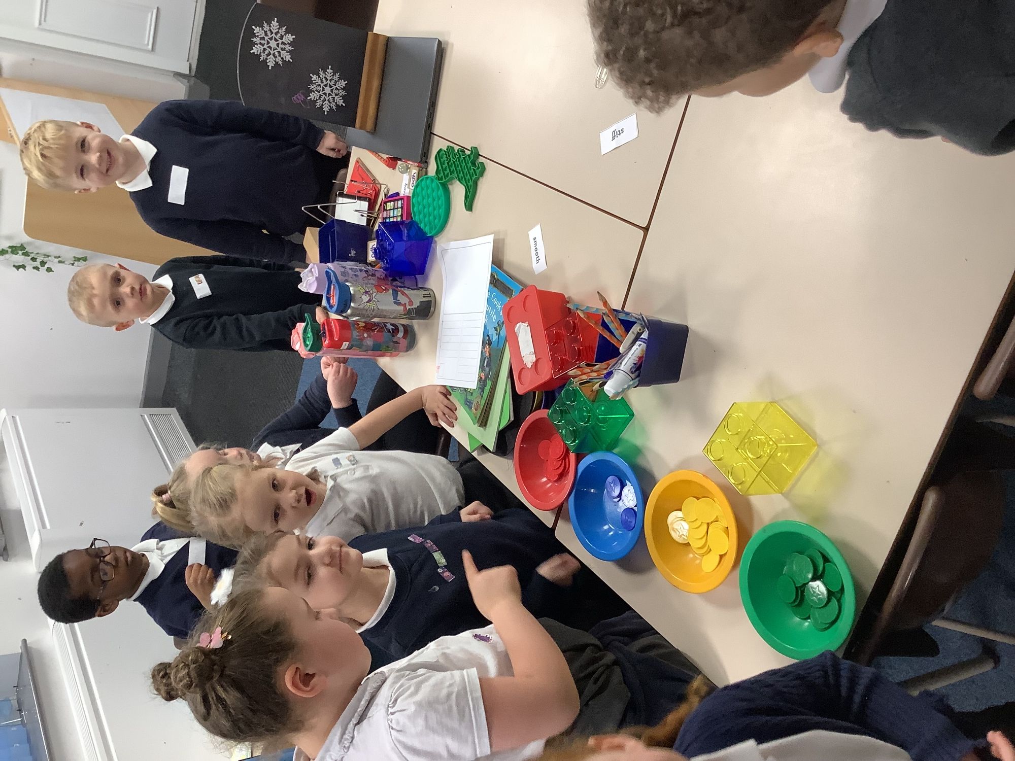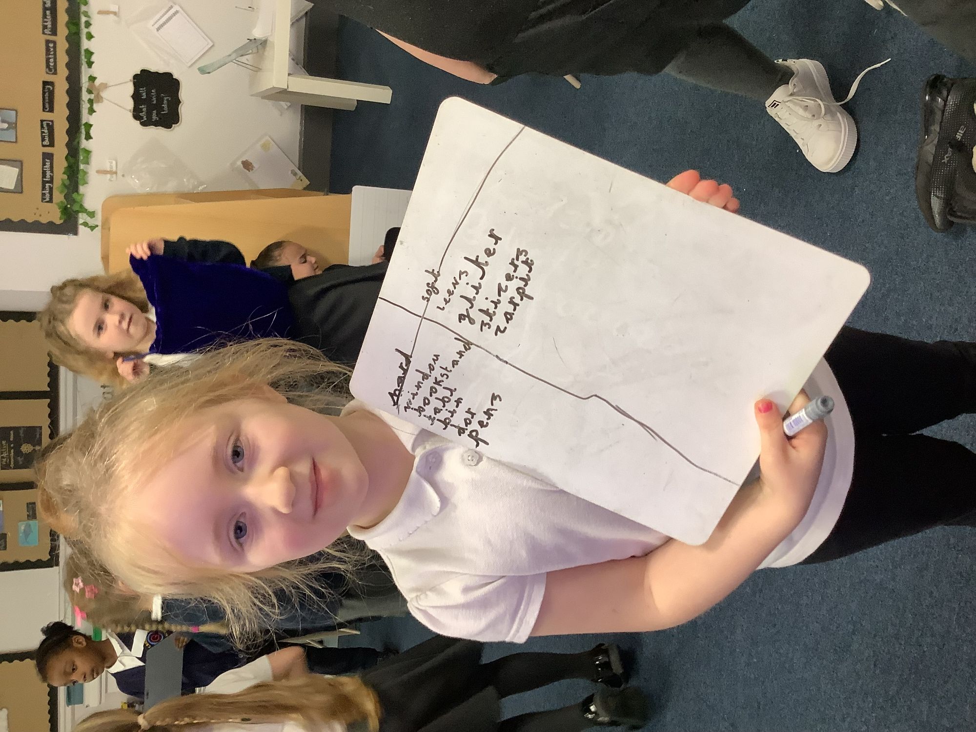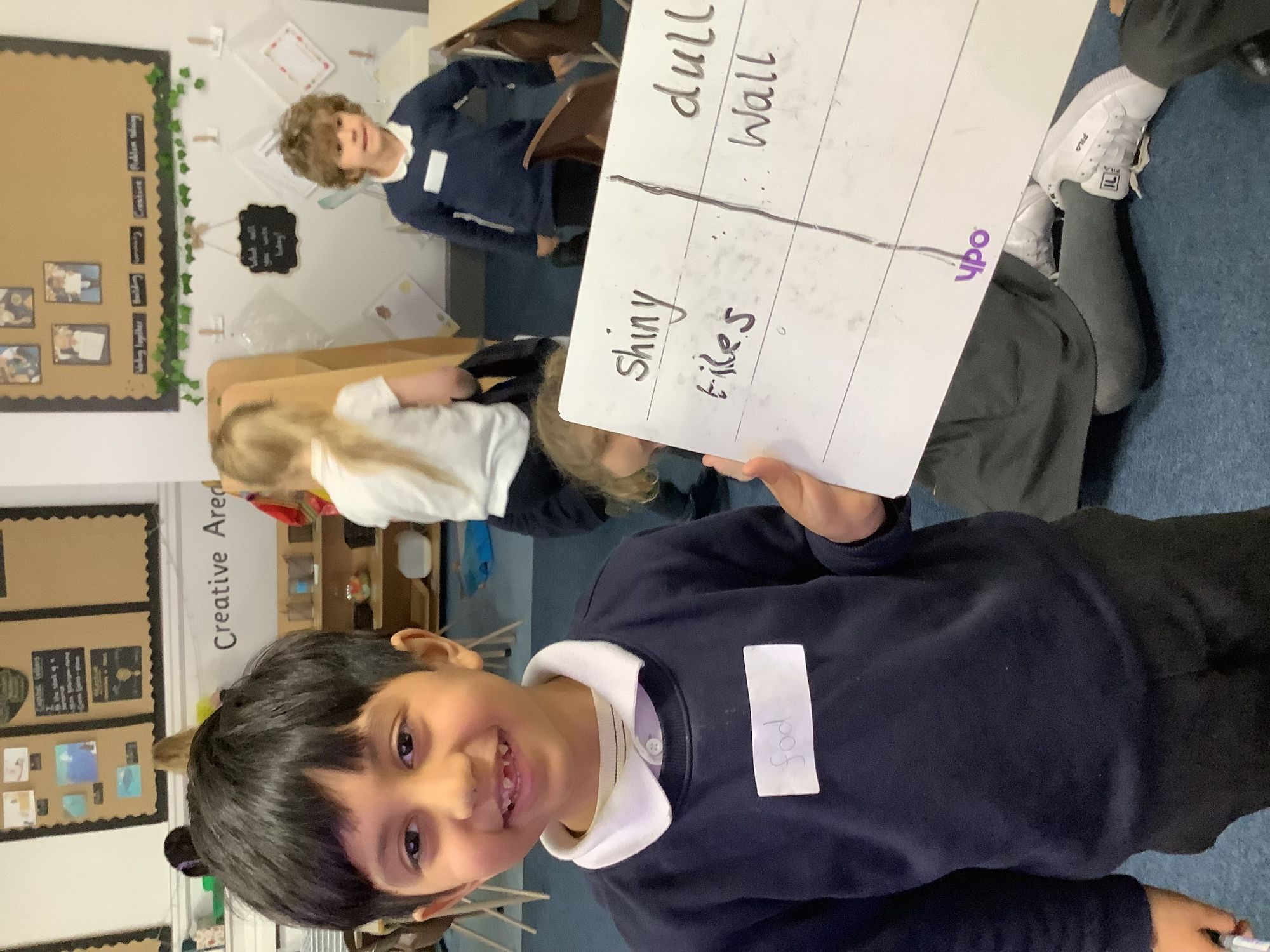 In our Science lesson we continued looking at materials and their properties. We thought about how we could sort materials and asked lots of important questions. We then went on a hunt around school and had to sort objects into their properties. We also were given properties and had to find things in our classroom that matched them!