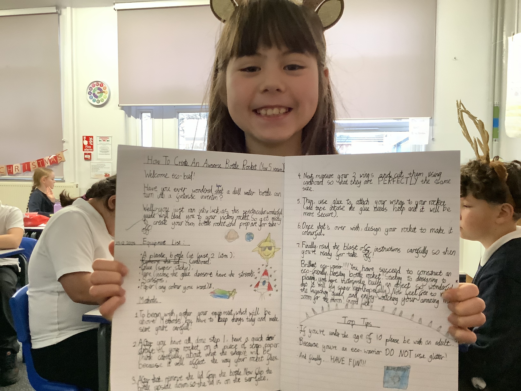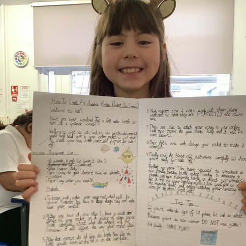Two of our super writers, who have both written a fantastic set of instructions on how to build a bottle rocket! Way to go girls!