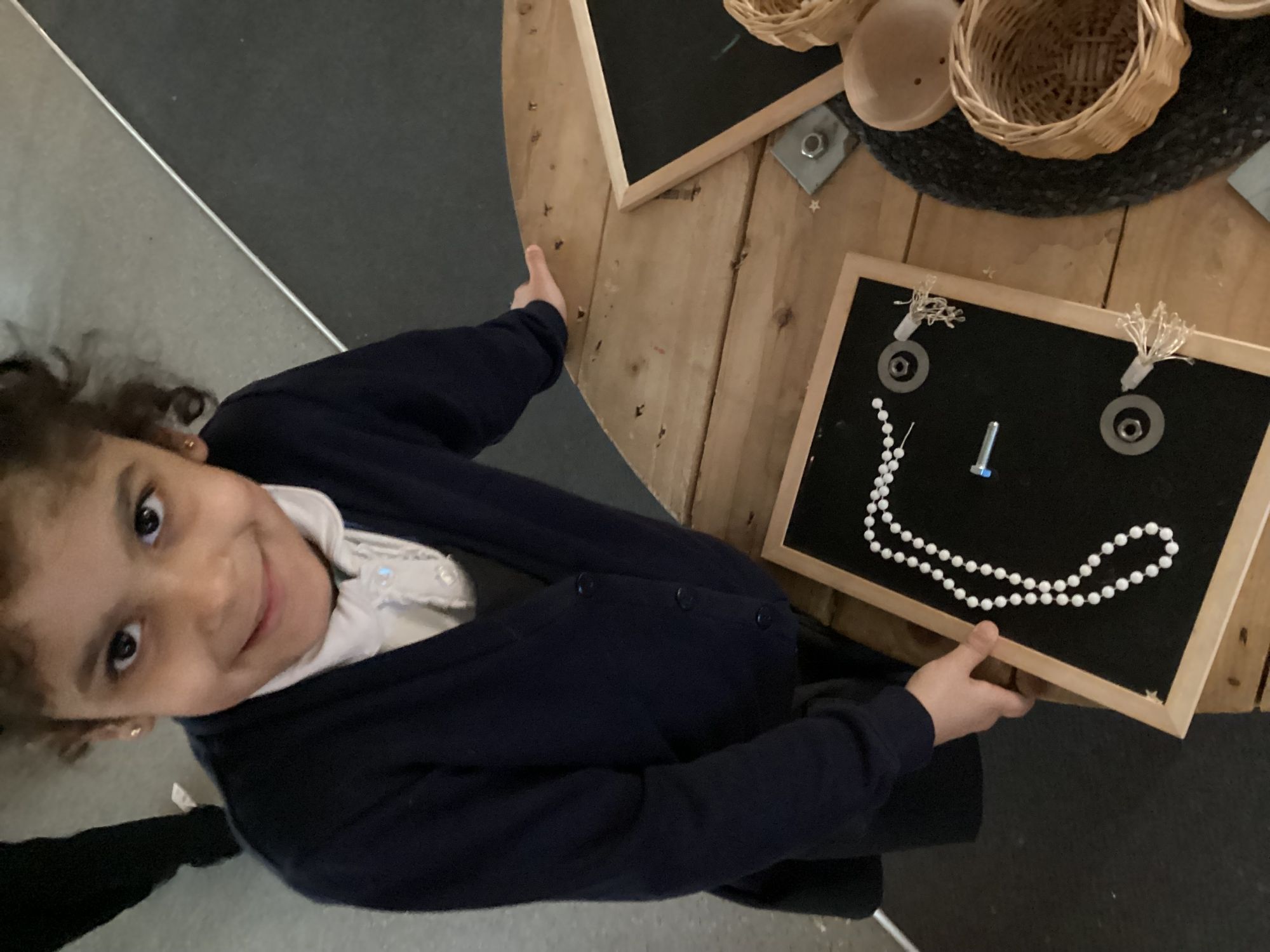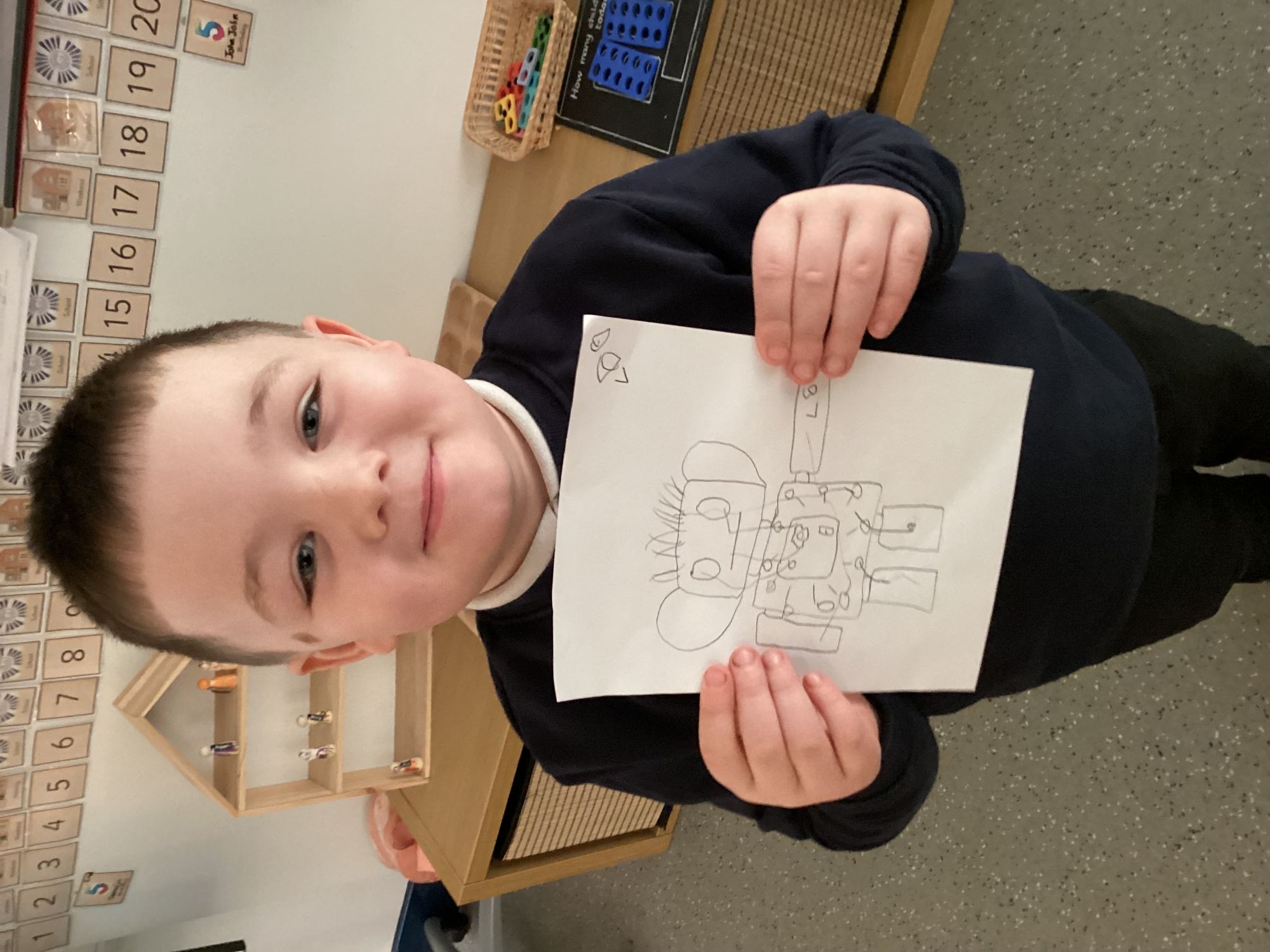 This term, the children have shown a particular interest in robots. They have used carpet roll tubes from the construction area on their arms and legs to role-play being robots, as well as created robot drawings in the creative areas. We have followed this child-initiated interest by enhancing our provision to inspire imaginative play and encourage further exploration.